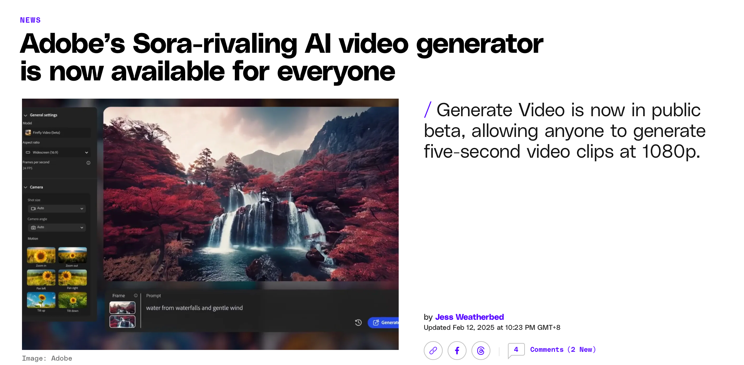 Adobe發佈文本和圖像到視頻生成器,拓展AI創作工具