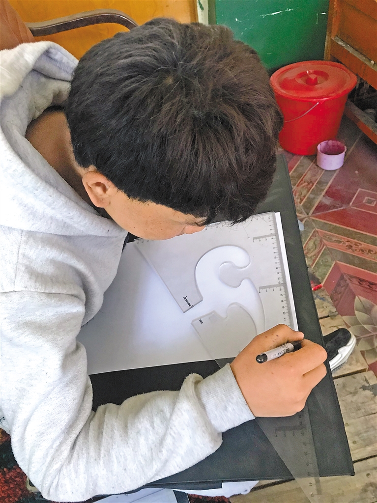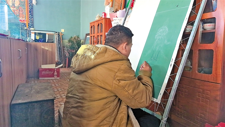 “那段時間是最難熬的,每天睜開眼除了吃飯,其他時間都在畫畫。”洛追告訴記者,當他真正開始學習時,才深刻體會到要想成為唐卡手藝人,需要付出更多努力。“也曾想過放棄,但還是咬咬牙堅持了下來。”説到這裏,洛追有些靦腆地笑了笑。