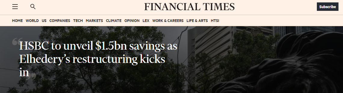 這家機構將於2月19日週三首次公佈這些數據,屆時埃爾赫德里將向投資者公佈全年業績。據兩位知情人士透露,預計扣除一次性成本後,該公司將從這些變化中節省 15 億美元。對於此,滙豐銀行不予置評。