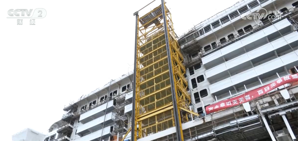 現在郵輪建造中還用上了許多如AR掃描、流程機器人這樣的“黑科技”,創新的建造方式也提升了整體作業效率。船體外側,一台從底部貫穿至頂部的醒目黃色升降裝置即將投入使用。有了它的幫助,很多房間艙室就可以提前在外部的工廠完成批量生產。