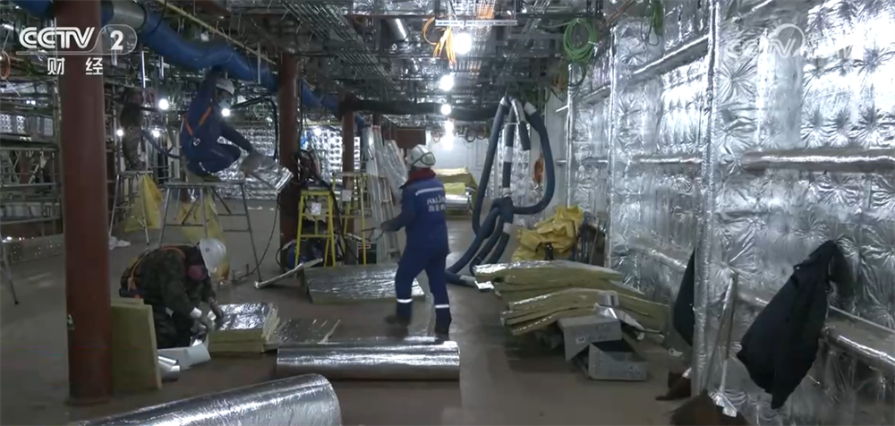 央視網消息: 就在不久前,第二艘國產大型郵輪實現了全船貫通,目前已全面轉入全船內裝及設備系統調試階段。春節後郵輪復工的最新情況如何?讓我們跟隨記者一起,去位於上海的中船集團外高橋造船的船塢現場看一看。