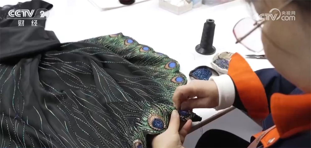 龔清娥是這家服裝生產企業的釘珠工人,她説今年他們的國潮服裝訂單增幅最大,而且客户對製作工藝的要求也是越來越高了。