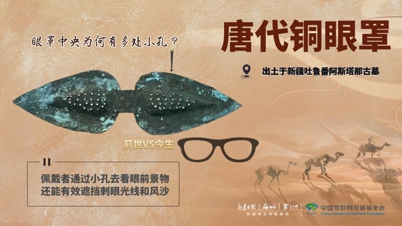 原來,當時的吐魯番夏季光照強烈、風沙大,冬季積雪期長,雪地反射的紫外線對眼睛傷害極大。因此,銅眼罩不僅可以遮陽擋風沙,還能預防雪盲症。這種實用的護眼工具既體現了古人的智慧,也反映了當時人們對自然環境的適應能力。