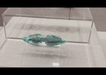 銅眼罩出土於新疆吐魯番阿斯塔那古墓。它外形獨特,薄薄的銅片被鍛壓成連體雙桃形狀,邊緣和中央都鑽有密集且排列整齊的小孔。透過小孔,佩戴者可以清晰地看到眼前景物。