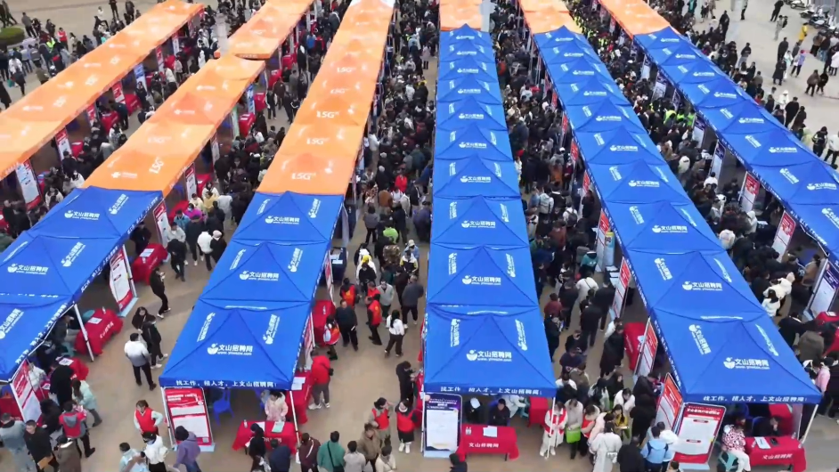 在雲南省文山市舉行的2025年“春風行動”現場推進活動中,來自省內外408家企業現場開展招聘,提供34500個崗位,涵蓋製造業、服務業、食品加工等多個領域。