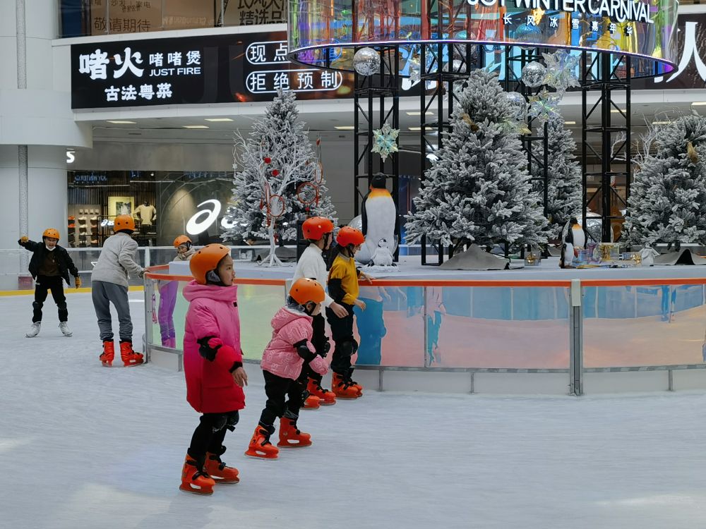 位於上海市閔行區的華潤上海萬象城冰場十分熱鬧,孩子們在這裏練習冰球、花樣滑冰。冰場運營方北京世紀星冰雪體育文化發展有限公司上海分公司有關負責人介紹,目前冰場日均接待消費者350人次,其中約80%是前來訓練的青少年學員。冰場新增幼兒園體驗活動,深受兒童及家長的歡迎。