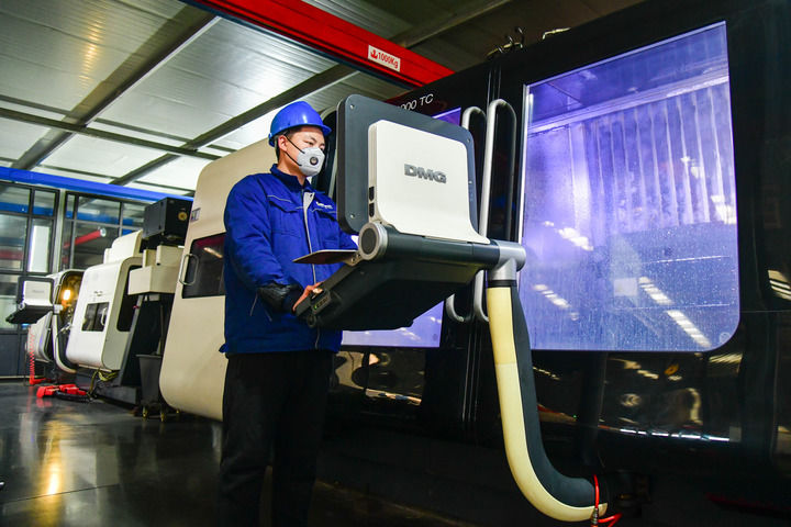 圖為1月7日在山東省淄博市博山區域城鎮山東博科真空科技有限公司,工人在操作數控機牀。新華社記者朱崢 攝