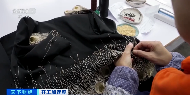 龔清娥是這家服裝生產企業的釘珠工人,她説今年企業的國潮服裝訂單增幅最大,而且客户對製作工藝的要求也越來越高了。