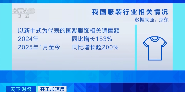 據瞭解,2024年,中國國潮服飾市場規模在2200億元以上,預計2025年將達到2500億元。另據某電商平台最新數據顯示,2024年以新中式為代表的國潮服飾相關銷售額同比增長153%。進入2025年,從1月份至今銷售額同比增長超200%。
