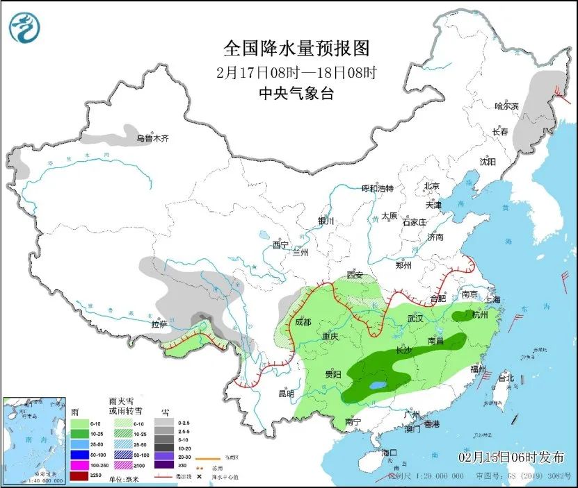 16日夜間至17日,西南地區東部、江南、華南西部和北部等地有小到中雨,貴州東部、湖南西部、廣西東北部局地有大雨和弱雷電天氣。