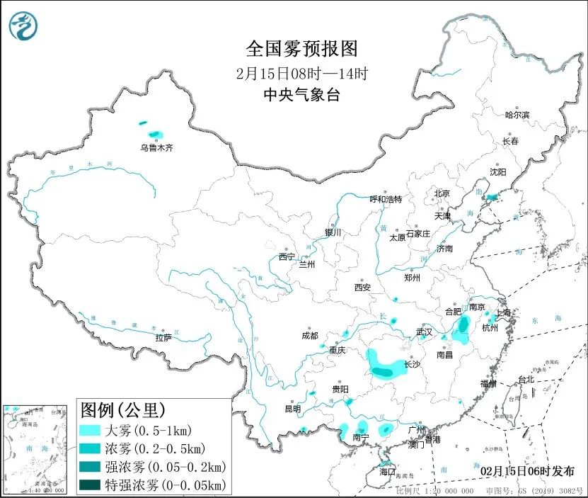 中央氣象台2月15日6時繼續發佈大霧黃色預警:預計,2月15日早晨至上午,瓊州海峽將有能見度不足1公里的大霧。此外,安徽南部、江西北部、湖南中部、廣西南部、廣東雷州半島等地的部分地區有大霧,局地有能見度低於200米的強濃霧。