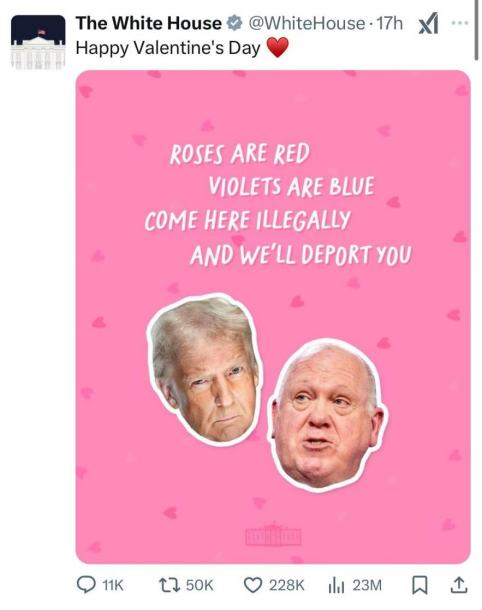 “最瘋狂帖子”!外媒:白宮“情人節賀卡”威脅驅逐非法移民,引發爭議