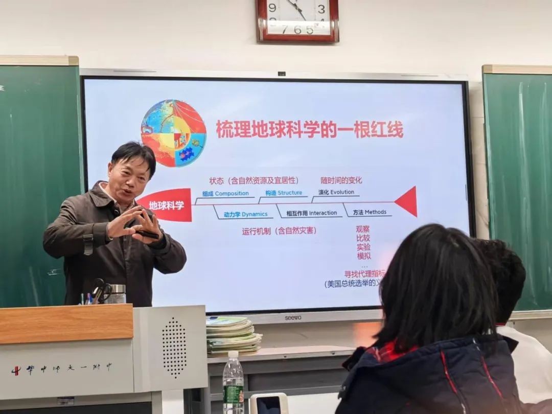 馬昌前給華師一附中學生講科普課。受訪者供圖