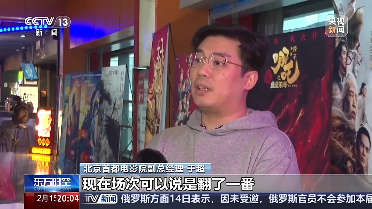 *北京首都電影院副總經理 於超:*從目前的情況看,我們在《哪吒2》這部影片的排場已經接近50%左右的場次,相較初一剛上映的那一天翻了一番。