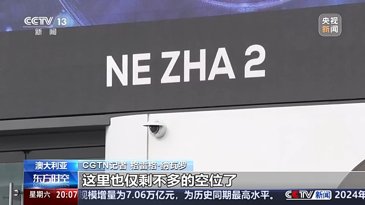CGTN記者 格雷格•納瓦羅:《哪吒2》正在悉尼熱映,即便是人們需要上學和上班的工作日,影院早上11點場次的票也已經售罄了。事實上,在接下來的幾天裏,這裏也僅剩不多的空位了。