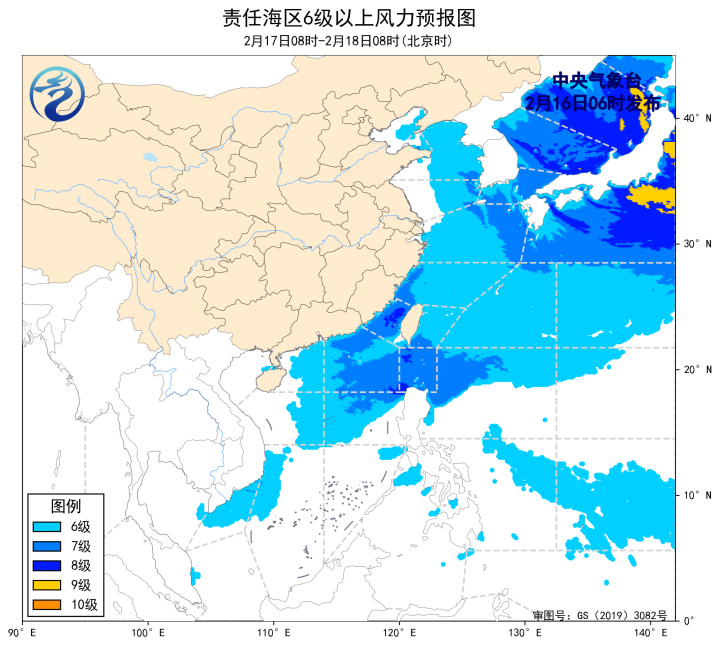 17日08時至18日08時,東海北部海域、台灣海峽、巴士海峽、南海東北部海域將有5~7級、陣風8級的偏北到東北風,黃海北部和中部海域將有5~6級、陣風7級的偏北到西北風,黃海南部海域、東海南部海域、台灣以東洋麪、南海中東部海域將有5~6級、陣風7級的偏北到東北風,南海西北部海域將有4~6級、陣風7級的偏東到東北風。