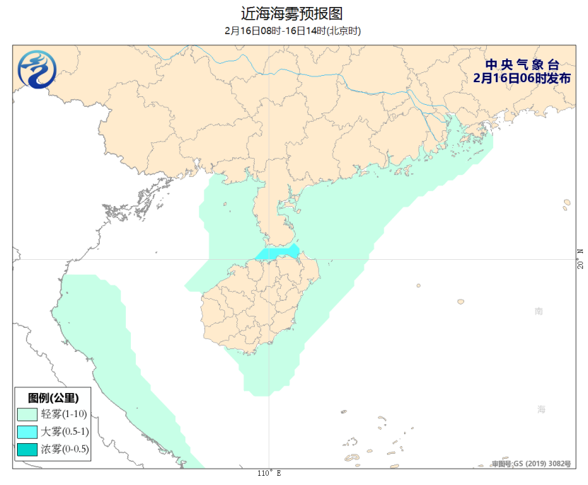 2月15日14時至16日02時,渤海出現了5~6級、陣風7級的偏北風。瓊州海峽出現了能見度不足1公里的大霧。