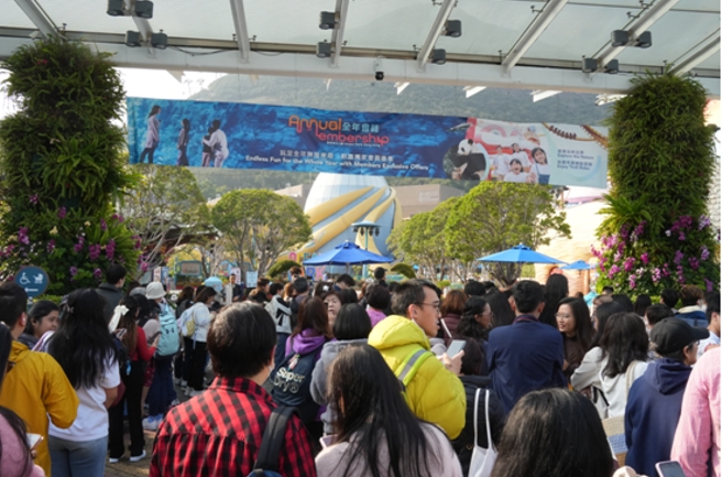 由於人數眾多,熊貓館內只能容納約100人,因此園方採取“流水式”入場安排,每人每次可逗留約5分鐘。如果覺得互動時間不夠,海洋公園每天還設“貴賓團”,在開園前入內參觀,有更多時間見大熊貓,每人收費1500港元,最多容納40人。同時也準備每日安排幾個時段網上直播“家姐”“細佬”的生活,讓公眾可以時刻留意它們的成長曆程。