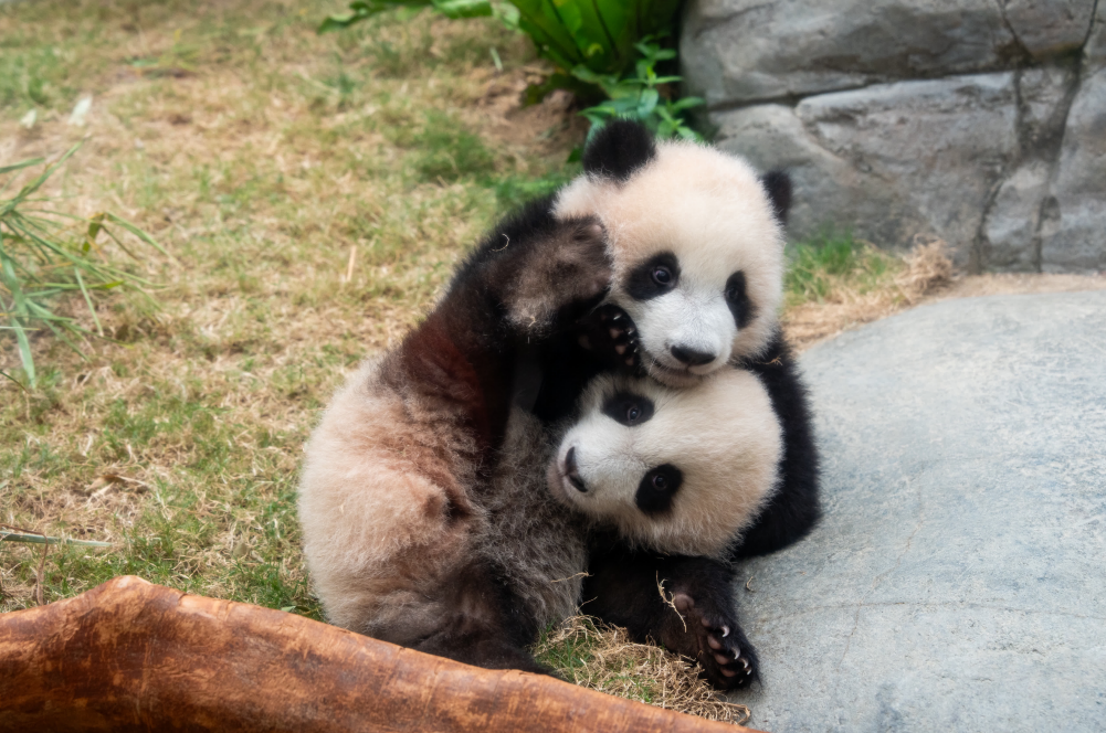 這對大熊貓龍鳳胎於2024年8月15日出生,是首次有大熊貓成功在香港“開枝散葉”。剛出生時,兩隻大熊貓寶寶非常脆弱。經過半年時間的精心呵護和餵養,它們的體重從100多克長到約11公斤,體格變得健壯,性格活潑好動,能獨立攀爬、奔跑,非常有活力。香港市民親切地稱呼雌性幼崽為“家姐”,雄性的則是“細佬”,意思是熊貓弟弟。這對龍鳳胎的父母大熊貓“樂樂”和“盈盈”是香港迴歸祖國十週年之際,中央政府贈送香港的第二對大熊貓。“盈盈”也成為有記錄以來最年長初次成功產子的大熊貓。