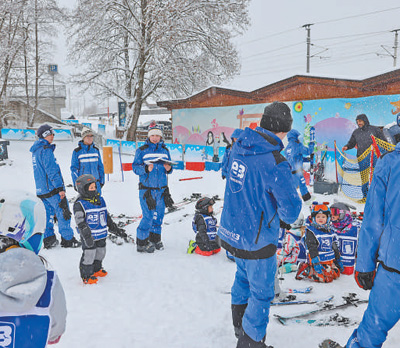 記者來到位於山腳下的基茨兒童滑雪樂園,一羣3歲以上的孩子在專業滑雪教練的帶領下,學習基礎滑雪技能。教練斯蒂芬正在雪道上滑着“之”字緩緩而下,身後的6個小朋友張着雙臂,跟着教練一搖一擺地依次滑下來。每成功練習一遍,斯蒂芬便與孩子們擊掌慶祝。斯蒂芬説:“滑雪培訓業務的火爆,不但為國內外遊客提供便利,也為我們帶來就業和收入。”