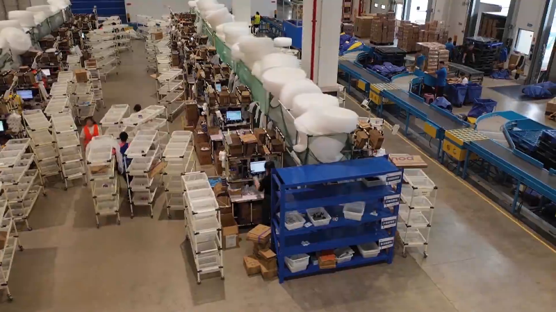 走進寧波舟山港海關監管倉庫,堆滿了發往美國的跨境電商商品。這家出口泡泡水的企業,1月份剛向美國用户發了700多萬美金的商品,但2月以來,隨着美國宣佈對進口自中國的商品加徵10%關税,企業收到不少客户發來的電子郵件,希望分攤成本。
