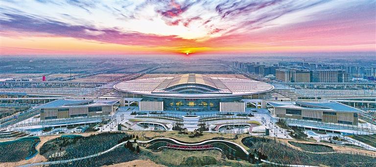 河北雄安站晨景。雄安站是河北雄安新區開工建設的第一個重大基礎設施項目,2018年12月1日開工,2020年12月27日開通運營,是連接京雄的重要交通樞紐。陳世豪攝(中經視覺)