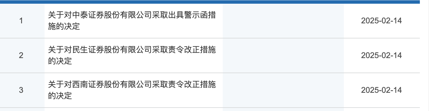 【環球網金融綜合報道】日前,證監會官網公佈了對西南證券、民生證券、中泰證券三家券商的處罰決定,均因涉及債券類業務違規。