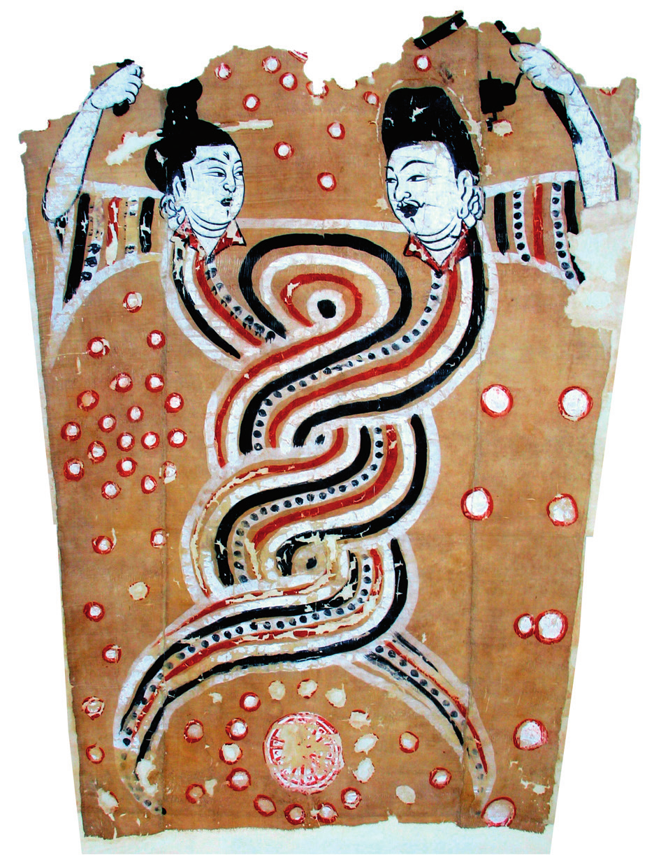 吐魯番博物館展廳內,兩幅並排懸置的伏羲女媧像引人注目:其中一幅,伏羲女媧為深目高鼻、絡腮卷鬚的胡人形象,另一幅則是中原漢族長相。