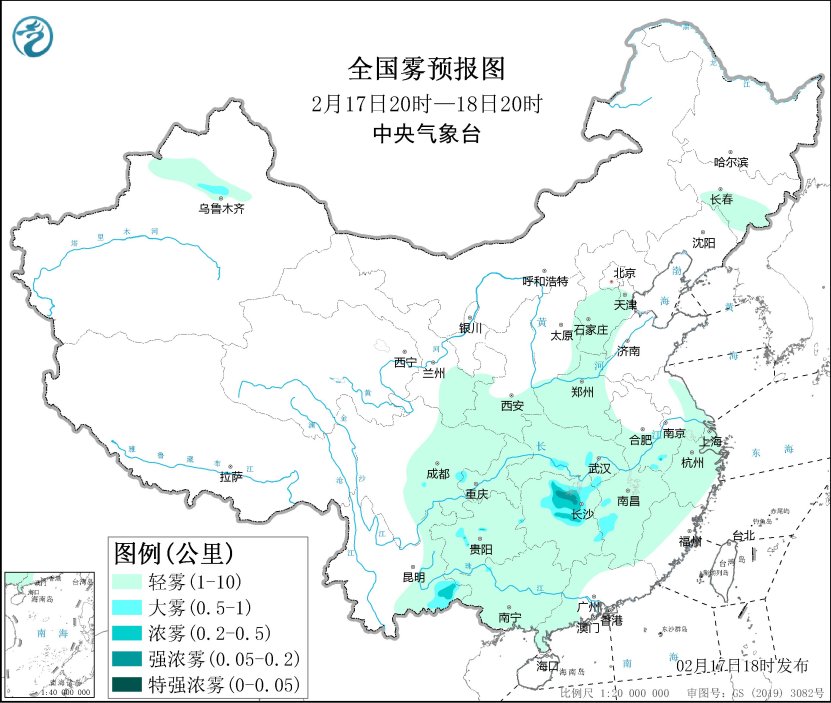 17日夜間至18日上午,湖南北部、江西西部、湖北南部等地的部分地區有大霧天氣。未來一週,全國大部地區大氣擴散條件總體較好,無明顯霾天氣。
