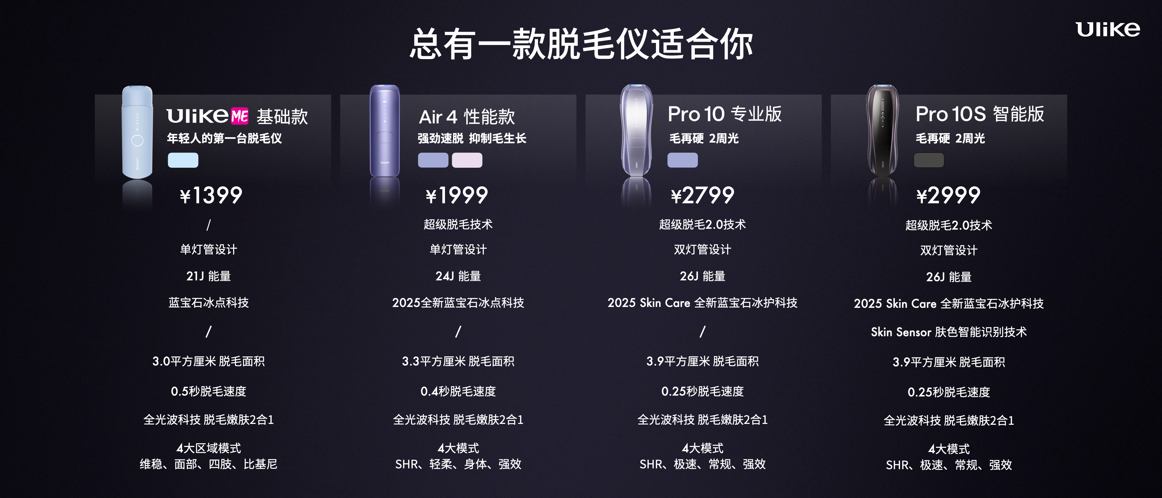 這3款產品各有側重,充分滿足不同人羣脱毛需求,真正做到用Ulike藍寶石冰點脱毛儀,讓用户不再有毛髮煩惱。
