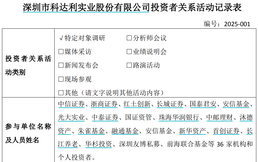 科達利接待基金及個人投資者調研,積極投身於人形機器人關節部件