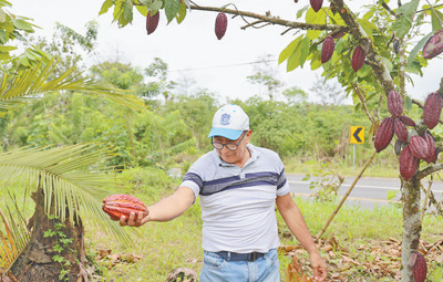 驅車來到厄瓜多爾中北部地區的皮欽查省、因巴布拉省和埃斯梅拉達斯省的交界地帶,汽車駛上一條寬16米、全長約40公里的公路。公路兩旁,油棕樹舒展着寬大羽狀複葉,可可樹上紅色果實已掛滿枝頭,不時還能看到售賣水果的商販。