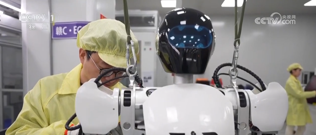 造一台人形機器人究竟有多複雜?記者第一次這麼近距離看到人形機器人的內部,十分精密,旁邊的工作人員正在對它的身體部件進行安裝和調試。