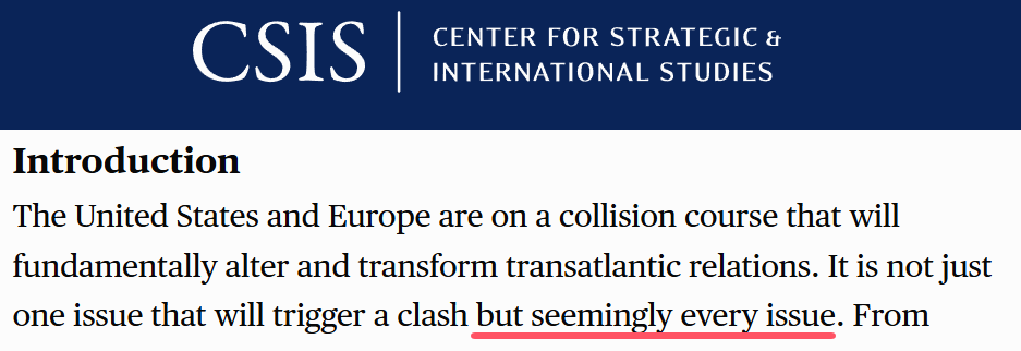 面對萬斯這些把歐洲這個美國傳統的西方盟友幾乎當做“對立面”抨擊的情況,歐美的主流媒體自然是相當不滿的,連日來不斷進行回擊。然而,其中大多數媒體卻並沒有解釋為什麼他們口中在二戰後重建並凝聚了歐洲的美國,如今會對歐洲如此“不滿”——尤其是,根據美國戰略與國際問題研究中心這家美國知名智庫的説法,美國新政府與歐洲的分歧,不僅僅是在貿易、軍費亦或是在俄烏衝突上對歐洲的輕視,還涉及到從墮胎、移民到言論自由和宗教信仰幾乎“每一個”議題。