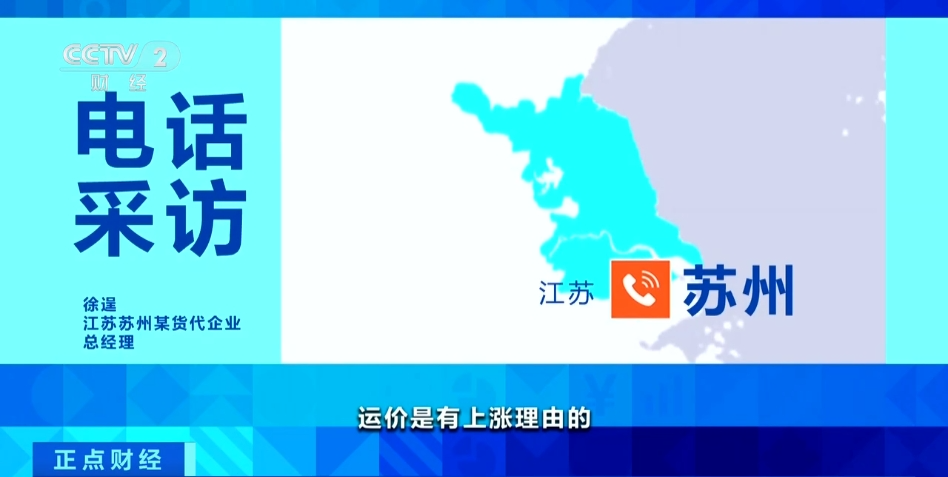 *江蘇蘇州某貨代企業總經理 徐逞:*我們對提價還是有一定接受度的,它是有上漲理由的,包括個人、客户的反饋,特別是農曆年(春節)之後,訂單量、詢價、需求都在上升。有一些説可能還要漲到70%,這種可能性不大,30%左右的接受度是有的。