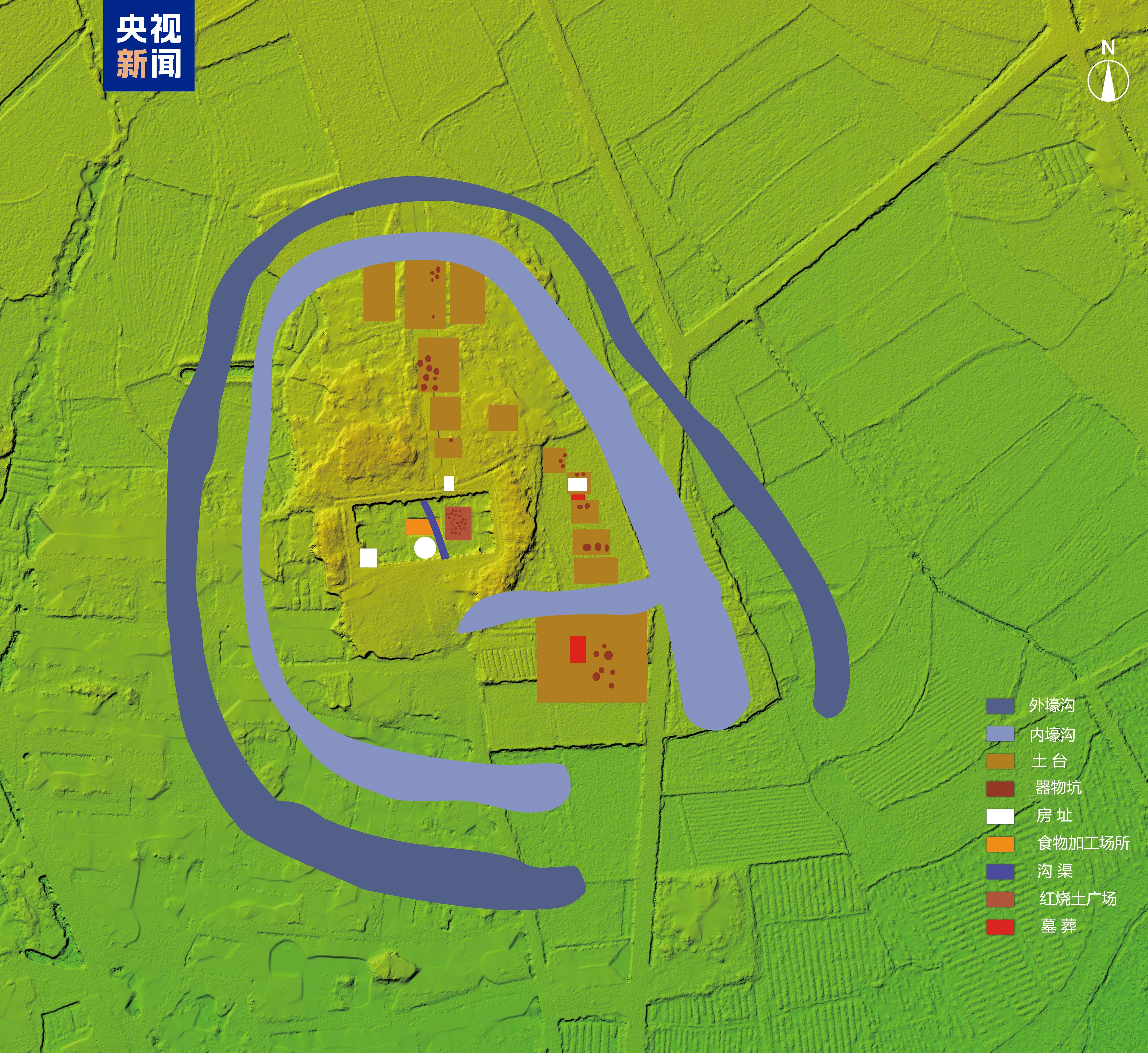 △寺窪遺址歷年發掘區及“圍壕(溝)”分佈圖