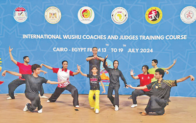 中國武術教練組在開羅為埃及武術教練員以及國家青年武術隊隊員等授課。周慶傑攝