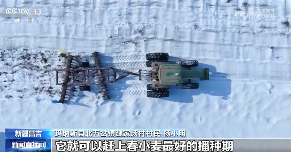 瑪納斯縣北五岔鎮魏家場村村民楊小明稱:“我們通過機械力量把這個雪破掉以後,機械進地可以提前到4月初,就可以趕上春小麥最好的播種期,也能保證春小麥的產量。”