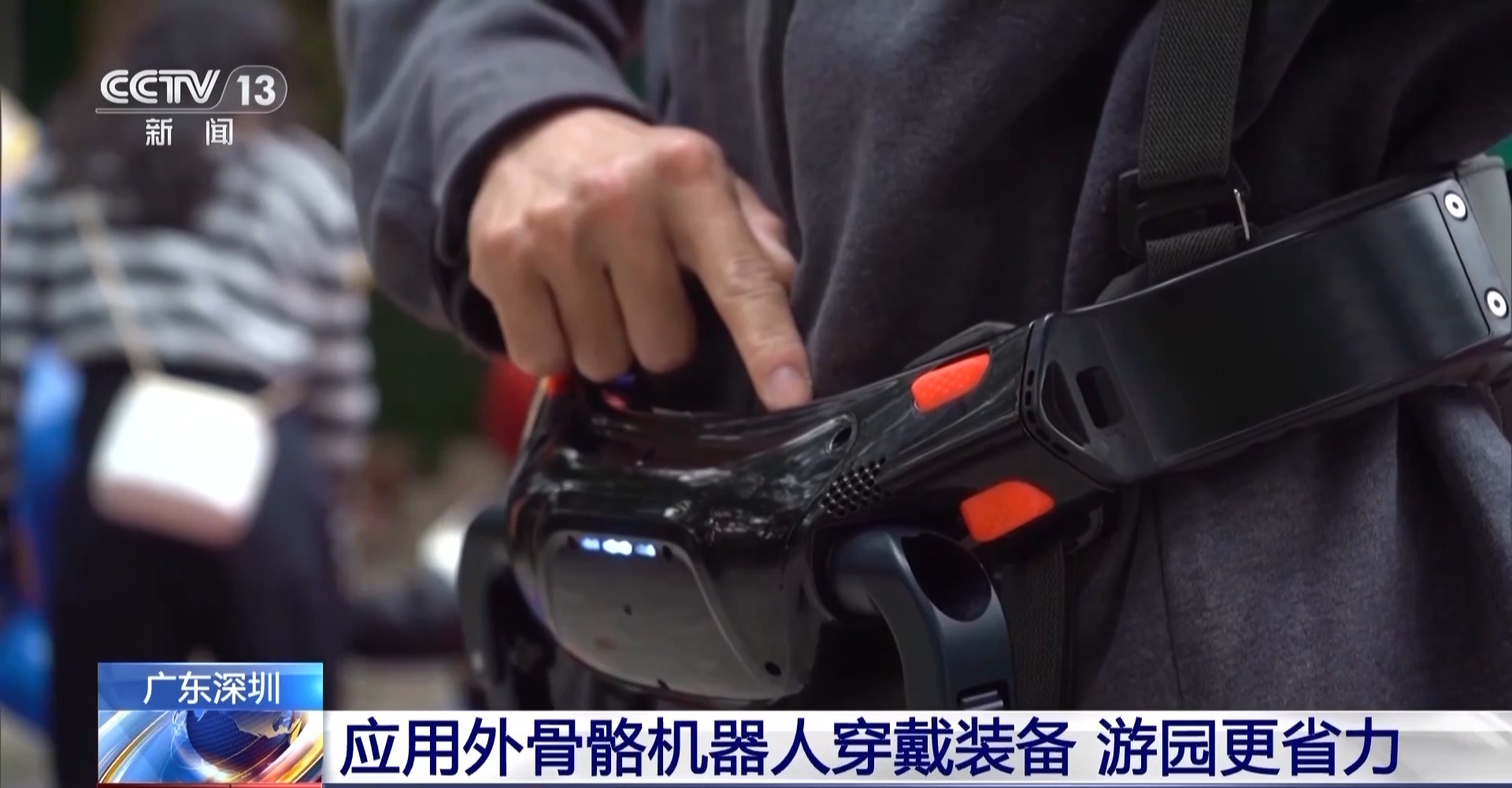 在深圳野生動物園入園廣場的體驗區,外骨骼機器人體驗項目吸引了不少市民遊客。該設備重1.8公斤,能夠即時感知用户動作並提供動態助力。