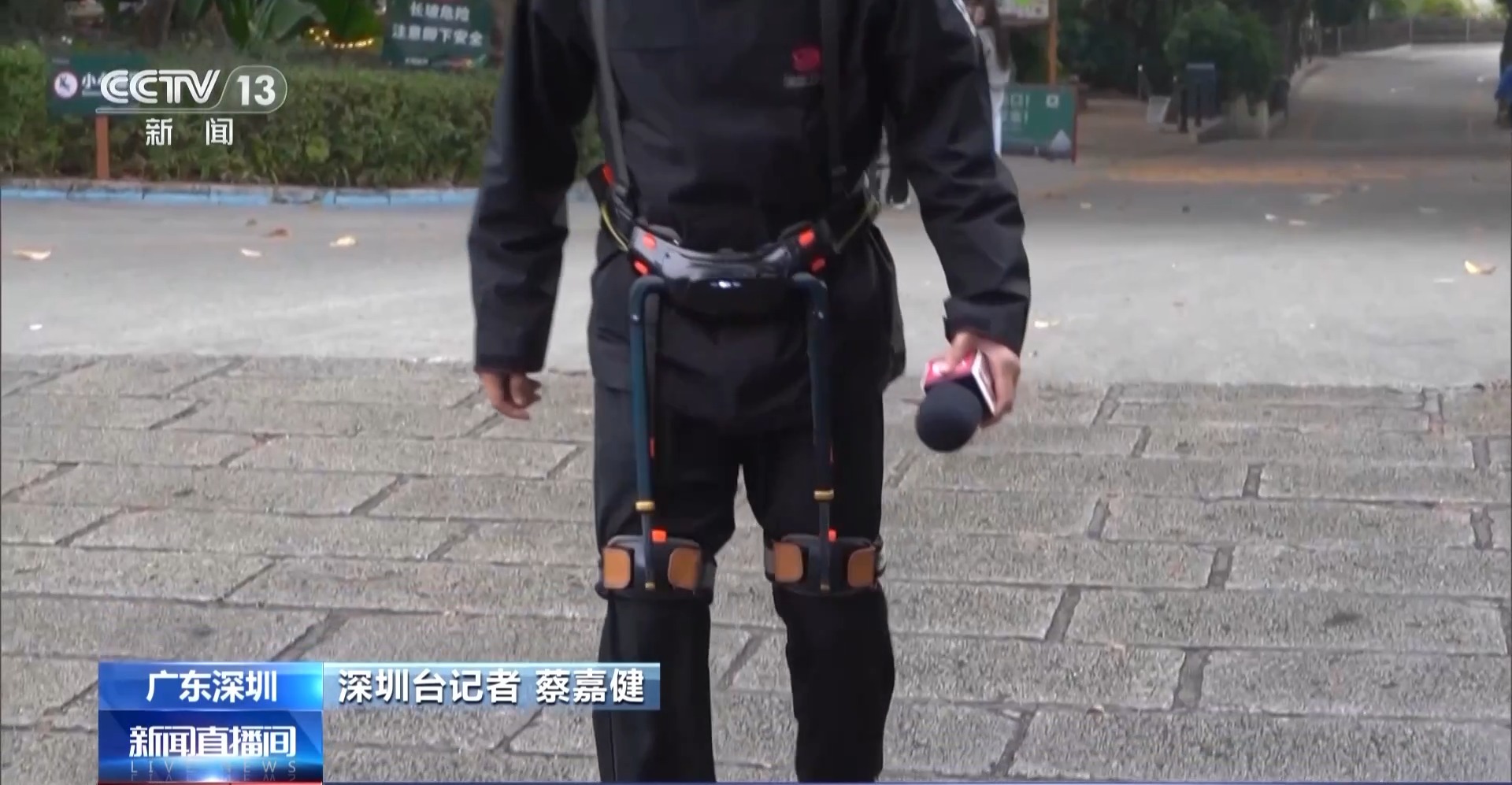 *深圳台記者 蔡嘉健:*通過兩分鐘的穿戴,就完成了“變裝”,剛剛在坡道進行了測試,發現在上坡的時候,有一個明顯的助力推着我前行,上坡更加輕鬆。