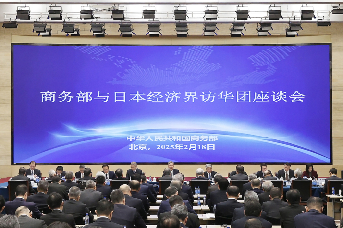 2月18日,商務部部長王文濤會見日中經濟協會會長進藤孝生、日本經濟團體聯合會會長十倉雅和、日本商工會議所會長小林健率領的日本經濟界訪華團並座談,就中日經貿關係、區域及多邊合作等交換意見。商務部部長助理唐文弘主持會議。