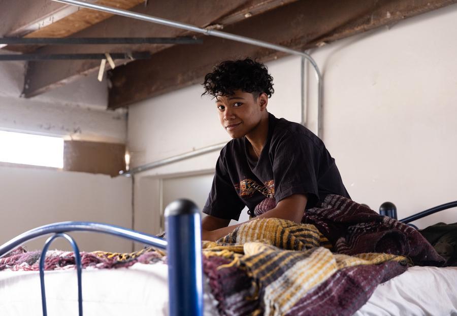 2025年2月2日,在墨西哥奇瓦瓦州華雷斯城的一處移民收容所,一名少年在休息。新華社記者李夢馨攝