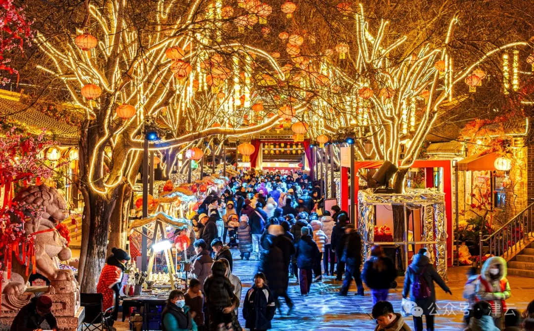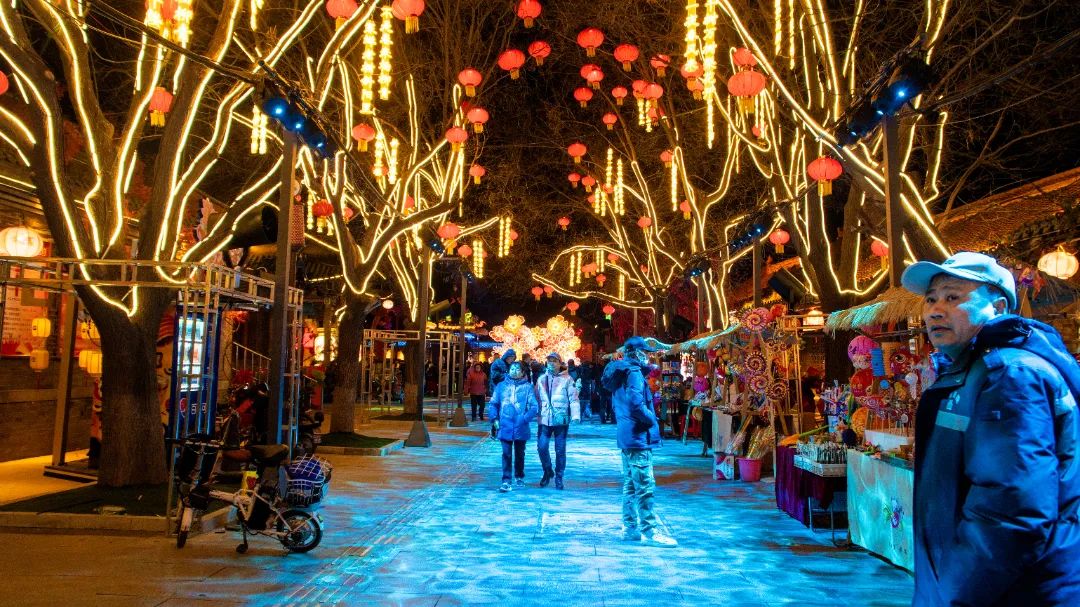 在一片充滿默契的歡聲笑語中,古鎮又一次迎來一天中的客流高峯。燈如海,光如晝,人如潮。這裏的空氣中瀰漫着濃濃的年味兒,中華傳統民俗在這裏自信展現,歷史文化在這裏沉澱昇華,各地美食薈萃,文藝表演雲集,再加上體貼入微的志願服務在一個個寒冷的冬日為這座城市注入温度,幾乎每位來到這裏的遊客都感嘆,美極了,嗨翻了,暖到了。