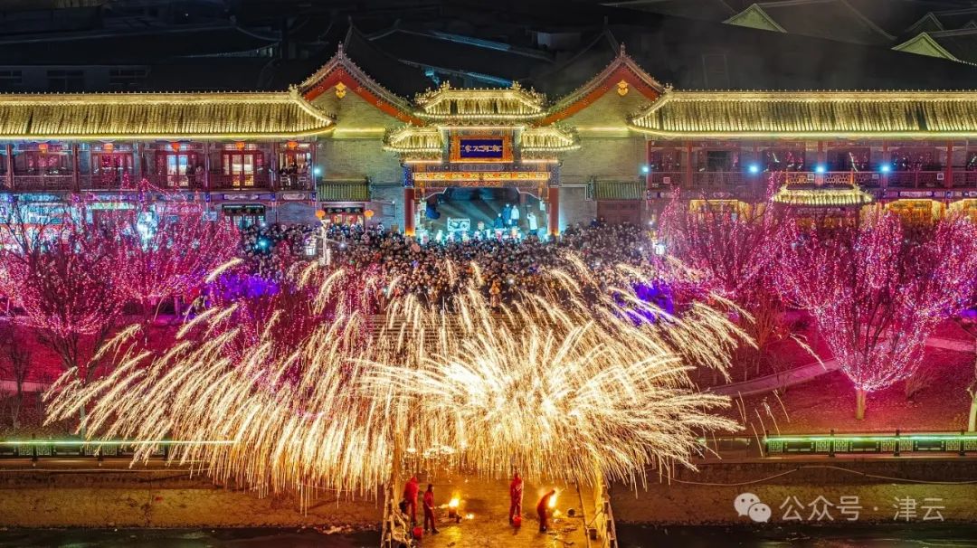 更讓我高興的是,這一場演出只是起點。這個春節期間,古鎮內可謂是天天有活動,時時都精彩。每天各類文旅體驗項目足足有50多場,從石家大院門前的街頭雜耍曲藝,到牌坊下的秧歌花會,從民俗文化館裏的互動戲劇,到如意大街上的沉浸式演出,從青致路上NPC主題巡遊,到御河橋畔的非遺打鐵花+空中無人機年畫秀等,就連早就見過大世面的我,都看得眼花繚亂,目不暇接。