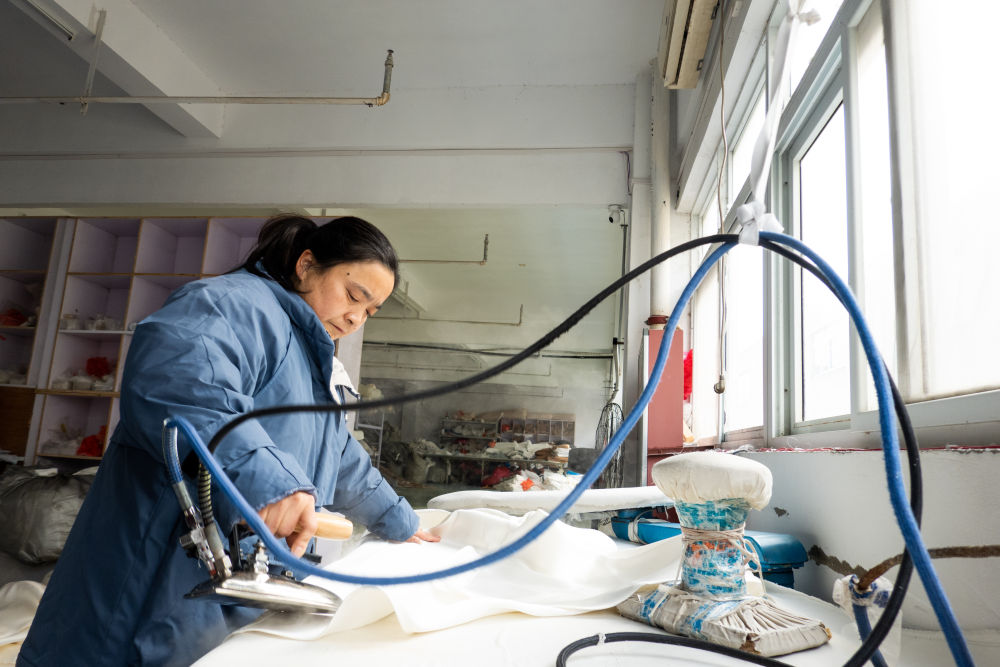 “剛回來時,周邊什麼配套設施都沒有,靠往返蘇州的大客車運送輔料,再將婚紗運出去。”許昌應沒想到,短短幾年後,這裏會成為中國最大的婚紗產地之一。