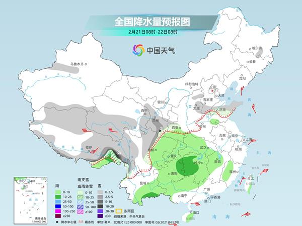 後天,新疆沿天山地區、西藏東部和南部、青海東部、甘肅中南部、寧夏南部、陝西中部、川西高原等地部分地區有小雪或雨夾雪,其中,西藏東南部、甘肅中南部、川西高原北部等地部分地區有中到大雪。陝西南部、江淮西部、江漢、江南大部、西南地區東部和南部、廣西等地部分地區有小到中雨,其中,湖南中西部、貴州東北部等地局部地區有大雨。