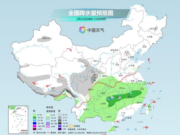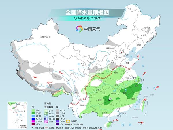 未來三天(2月20日至22日),南方大範圍陰雨天氣持續,需注意防範連續降雨對交通出行、農業等方面的不利影響。受陰雨和冷空氣影響,江南等地體感濕冷,多地最高氣温不足10℃;北方大部氣温也會震盪下降,下週初將迎來升温。