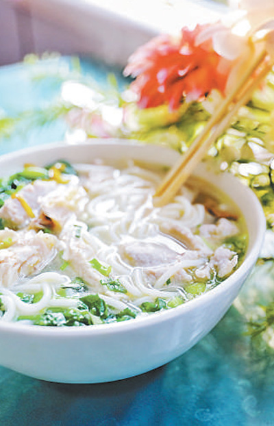 這還是一條“美食專線”。廚師在餐車精心製作鮮花版過橋米線,還向顧客贈送新鮮的鮮花餅和玫瑰花飲。