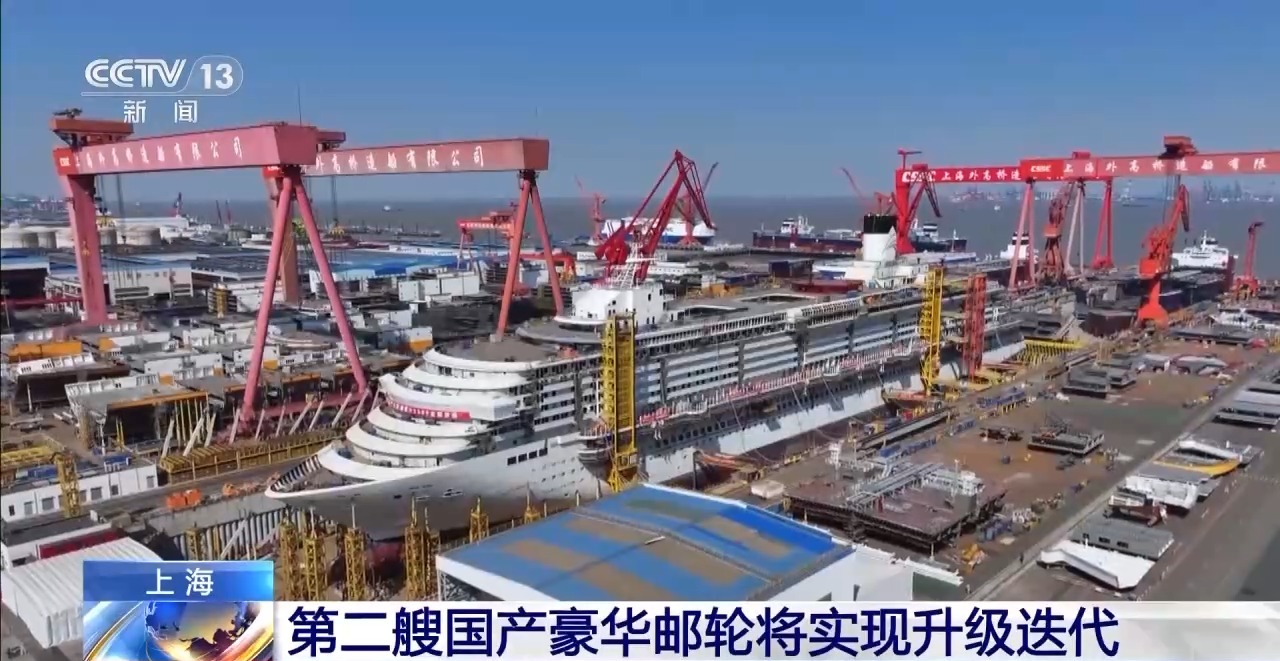 我國第二艘國產豪華大郵輪愛達·花城號在上海緊鑼密鼓地建造中。春節前,全船的主體結構和外觀已經成型。目前,工作重點轉為設備安裝調試和內裝。按計劃,今年5月將進行第一次船體起浮,2026年底交付。