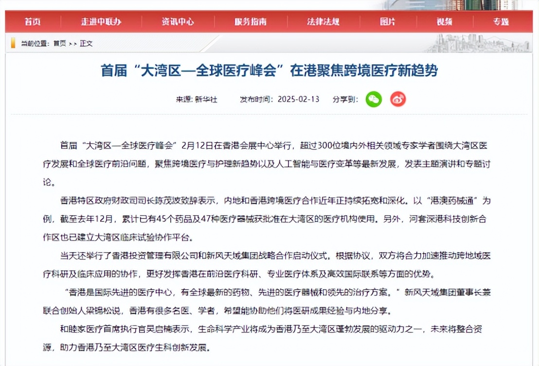 峯會期間,香港投資管理有限公司與新風天域集團啓動了戰略合作,旨在加速推動跨區域醫療科研及臨牀應用的協作。雙方將通過構建“香港研發—灣區轉化”的創新模式,推動先進診療方案和醫療技術的雙向流動。此外,新風天域還將依託其廣泛的醫療網絡,推進重要臨牀實驗在香港及大灣區的落地。